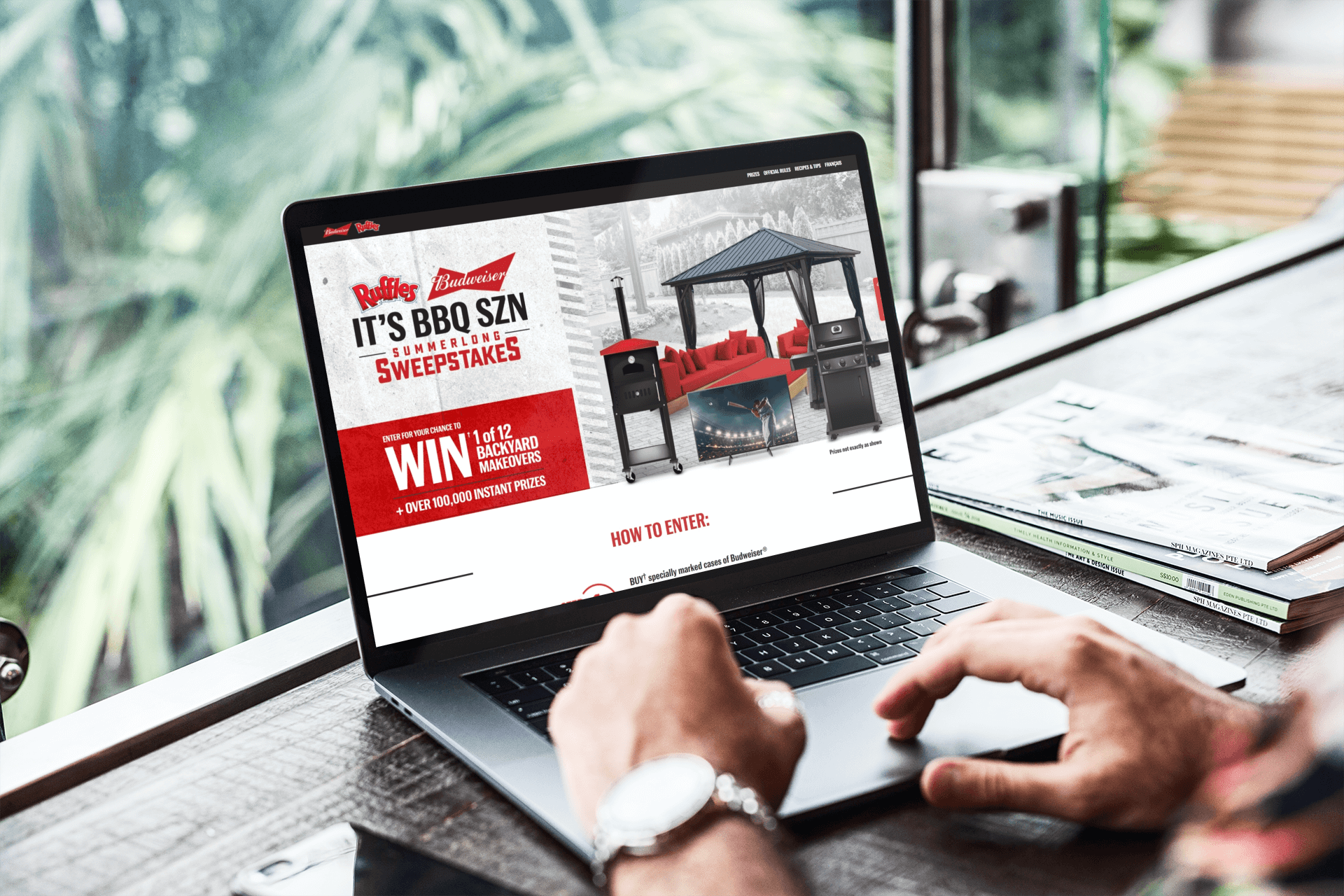 A contest site that allows users to enter a draw to win prizes from Ruffles and Budweiser.