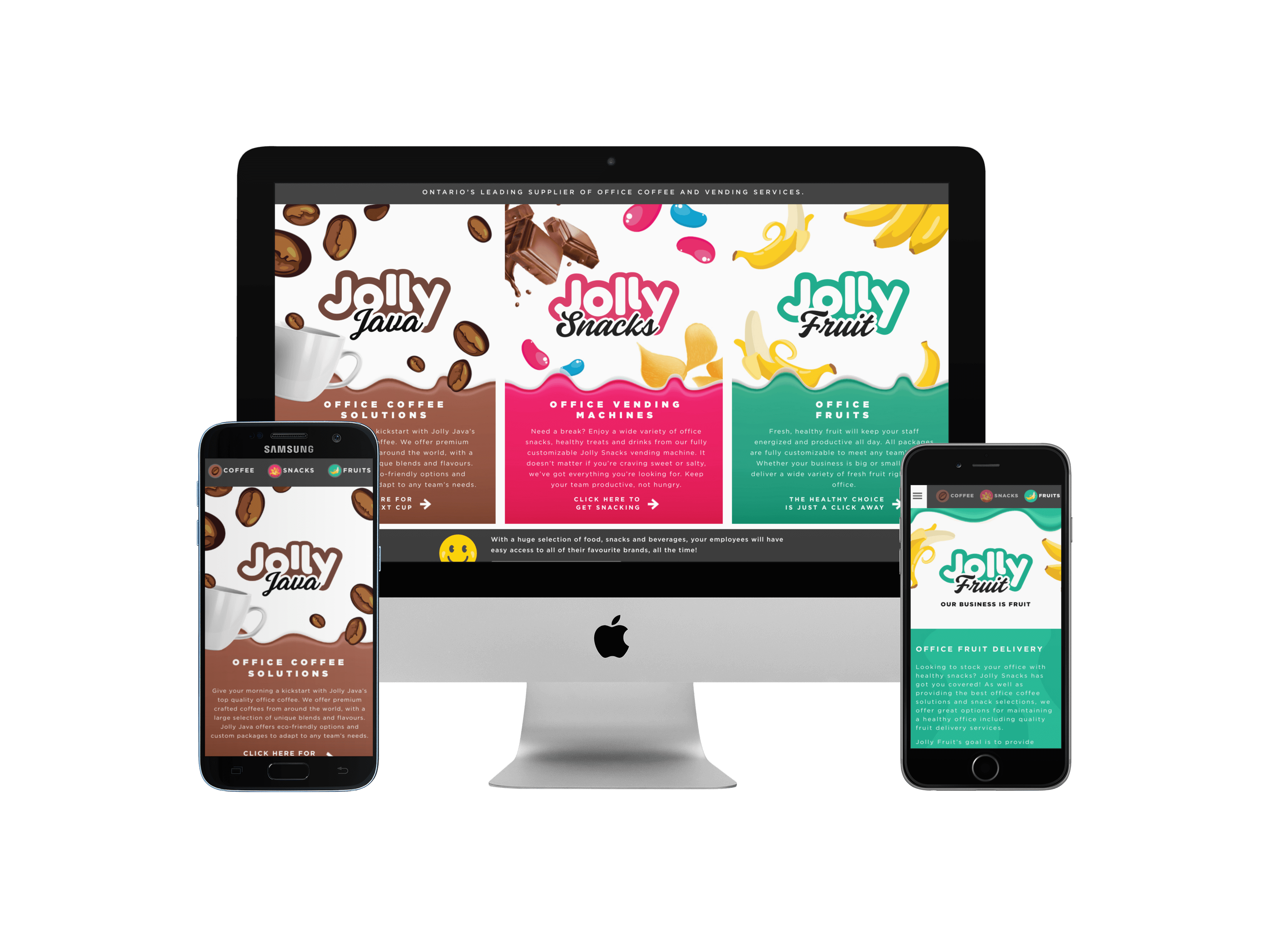 A marketing site to promote the Jolly Snacks office delivery service and coffee machines.